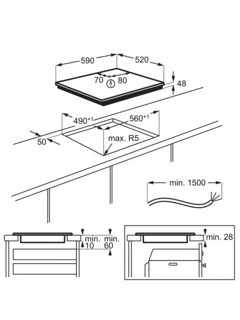 Подробная информация о конфорках 1 x 145 мм, 1.4 кВт; 1 x 145 мм, 1.5 кВт; 1 x 180 мм, 1.7 кВт; 1 x 180 мм, 1.8 кВт