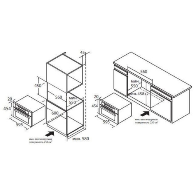 Глубина монтажного проема 55 см